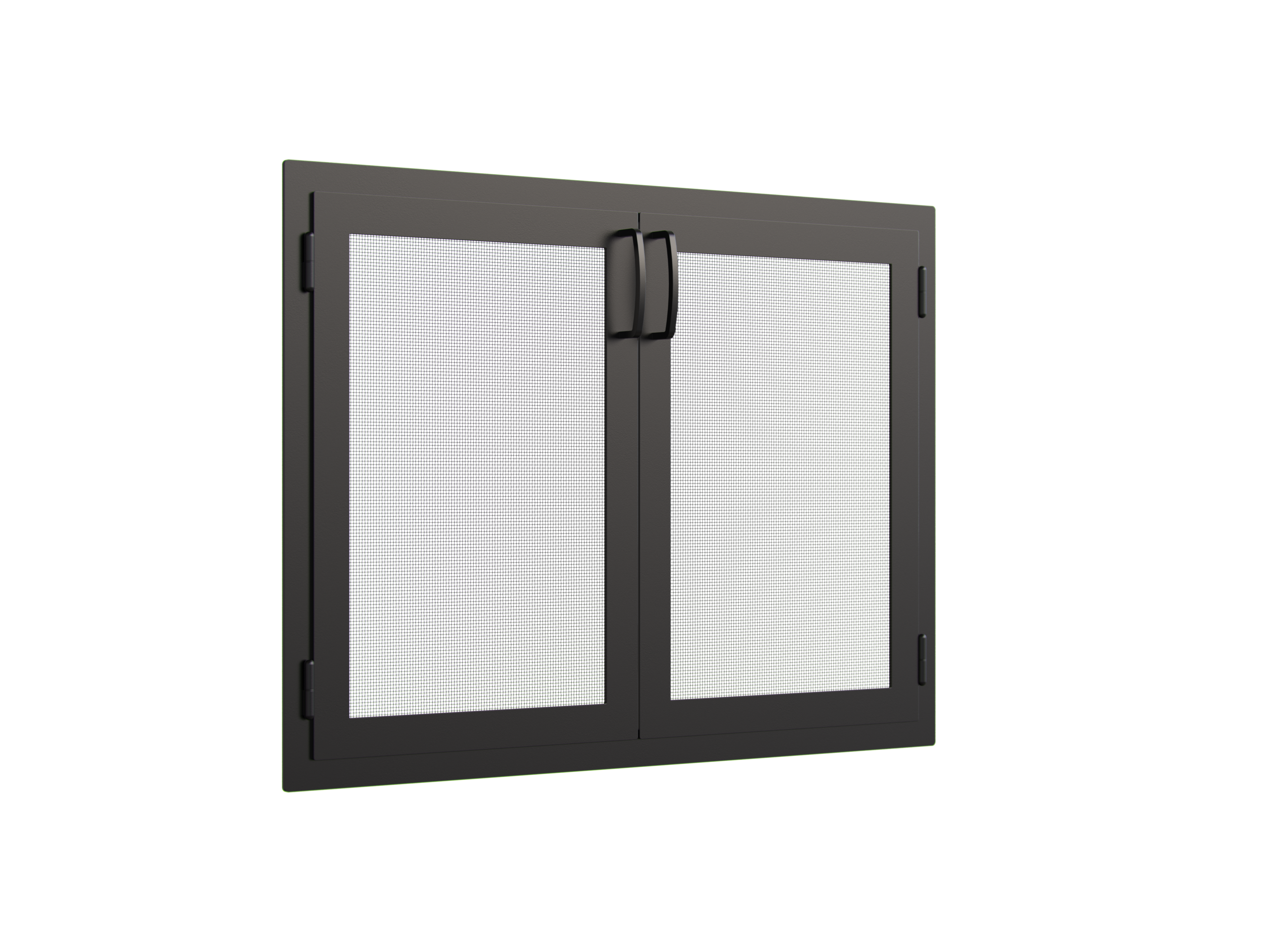 Update your fireplace with a hand-fabricated mounted fire screen from Fortin Ironworks. With a combination of hand forged and laser cut components, these fire screens are sure to make a statement even when a fire isn’t raging behind it. The frame is constructed with laser cut steel, while the screen itself uses a fine mesh to make sure the embers and fire stay in the fireplace. Each door panel is mounted with bullet hinges, allowing for easy removal when needed. To keep your fire screen looking pristine, we coat each of them in our own heat resistant, semi-matte, black powder coat. If you want a fire screen, but want a different look or a different size, contact us today and see how you can get started making your own custom fire screen! Due to the hand-crafted nature of this product, all fire screens require a 3-4 week lead time.