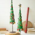 These decorated Christmas trees, made of recycled iron, stand 36.5 and 30.5″ tall. Welcome guests in your entryway or set a barrier around the fireplace with this set of two. They make a great addition to Christmas tree collections or holiday villages.